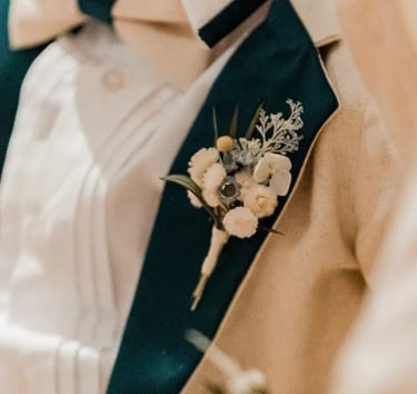 Pequenos detalhes com grandes significados. Os nossos boutonnieres são criados para complementar o look com um toque discreto que celebra união, tradição e cuidado com cada pormenor.